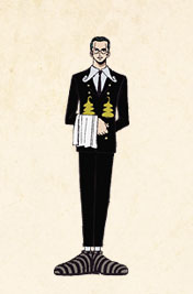 カヤの屋敷に仕える執事。常にカヤの身を案じておりカヤに害を成すものに対しては容赦しないが、本来は涙もろい人情家である。またルフィたちが乗る“ゴーイングメリー号”をデザインした。