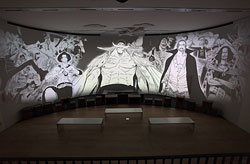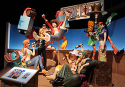 シアターでは、アーチ状の大型パノラマスクリーンに、マンガ原稿を立体的に演出した迫力の映像が。今までの冒険を追体験できる内容に目が離せません!