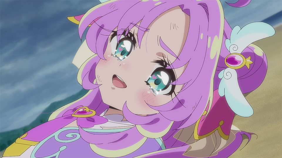 一方、みくるは再び訪れた学校で出会ったニジーを追い、虹ヶ浜に向かっていました。プリキットボイスメモで連絡をとり、同じ場所に向かうあんな。たどり着いた虹ヶ浜では、ニジーが怪盗団ファントムの一員のるるか、マシュタンとともに待ち構えていました。
