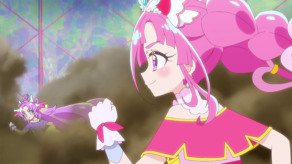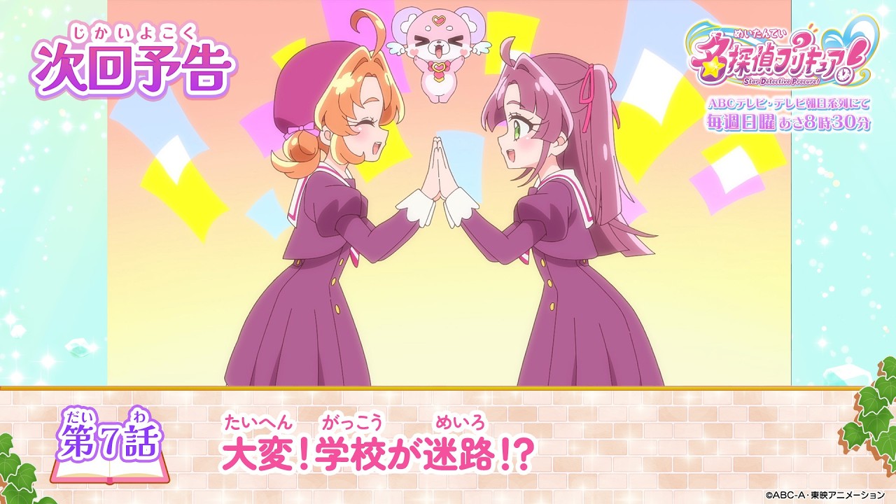 桜の木にやどったマコトジュエルを守りきり、再び校庭に戻ってきたあんなとみくる。すぐに始業のチャイムが鳴り、みくるは授業が始まる直前に理科室に駆け込みますが、あんなが見当たりません。廊下では、みくるとはぐれ、ポチタンと迷子になったあんなが助けを呼ぶ声が響き渡っていました。