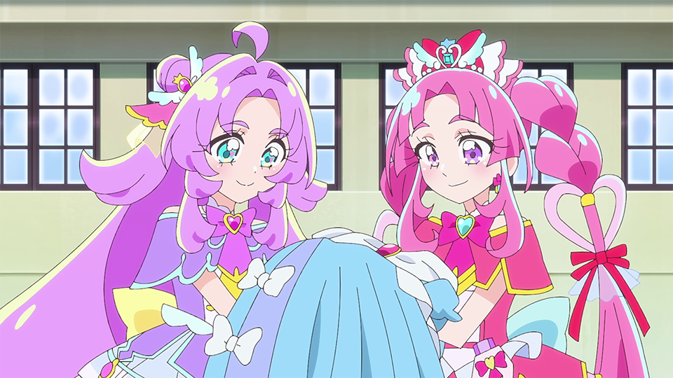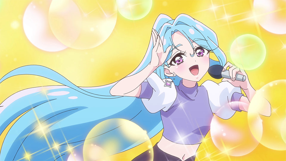 本番開始まで残り10分を切り、しるくがステージで時間を稼いでくれている間にひらめいたあんなは、プリキットボイスメモで理事長の声をまねて「ドレスが見つかりました」と校内アナウンスを流します。アナウンスを聞いていた3人のうち、ズボンのすそを気にしていたディレクターの榊原が犯人だと見抜くと、榊原に変装していたアゲセーヌが正体をあらわし、服の下に着込んでいたドレスをハンニンダーへと変えてしまいます。あんなとみくるもプリキュアに変身し、アンサーがコマのように高速回転するハンニンダーを真上からの攻撃で動きを止め、浄化することができました。