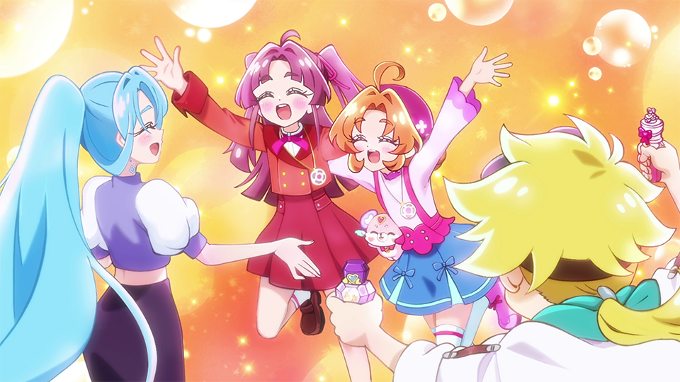 ドレスは無事に演劇部に届けられ、新入生歓迎会は大成功に終わりました。後日、あんなたちがその様子を伝えるテレビ番組を見ていると、しるくが事務所にやってきます。演劇部の部員からプリティホリックのことを聞き、立ち寄ってくれたしるくを、あんなたちは笑顔で迎え入れるのでした。