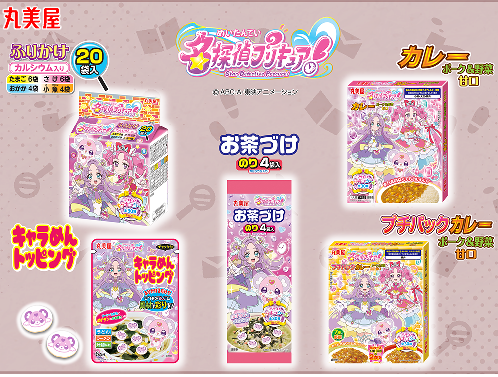 「プリキュア ふりかけミニパック」「プリキュア カレー<ポーク&野菜甘口>」「プリキュア プチパックカレー<ポーク&野菜甘口>」「プリキュア お茶づけ」「プリキュア キャラめんトッピング」が登場!