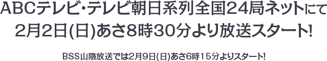地上波放送直後、毎週日曜9:00より配信スタート ※第1話は2月2日(日)9:00より配信