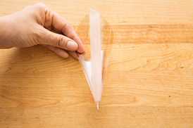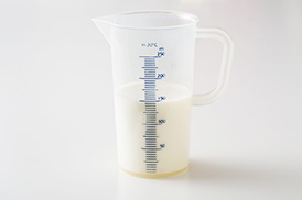 計量カップに材料を入れたら、平らな場所に置いて、目もりは横から見ましょう。