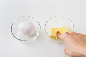卵やバターが冷たいと、他の材料とうまく混ざりません。冷蔵庫から出した卵やバターは、30分くらい室内において置きます。