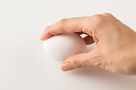 角に殻をぶつけると殻が入り、卵黄が崩れやすいので。殻は平らなところで割りましょう。