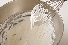 七分立てまで泡立てます。1/3量を取り分けて冷蔵庫に入れておきます。