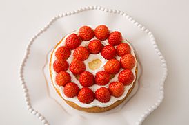 クリーム丸口金の絞り出し袋に詰め替えて絞ります。いちごをのせます。