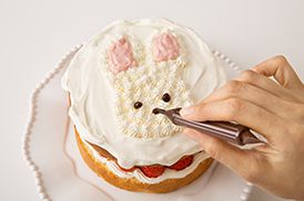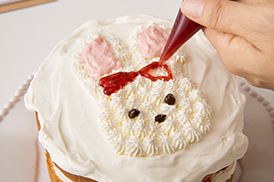 残った八分立てのクリームを星口でうさぎの形に絞ります。