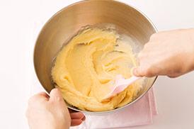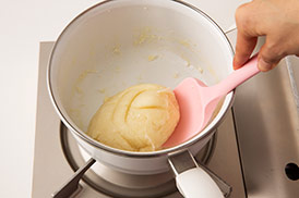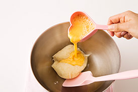 このときに加える卵の量が1個だともっちり重めに、2個だとふんわり軽い食感になるよ!