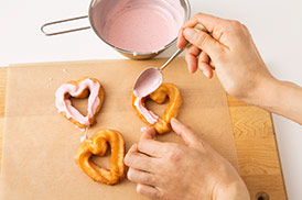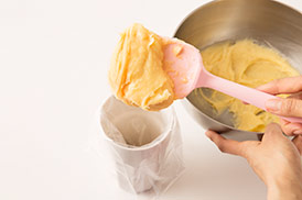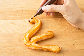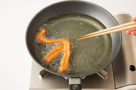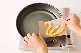 必ず星口金を使って絞ってね!丸い口金で絞ると、揚げているときに生地が破裂することがあるので注意してね!