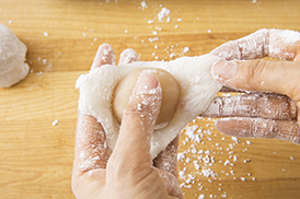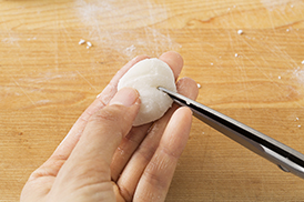 生地の真ん中は厚く、まわりを薄くするのがポイントだよ!