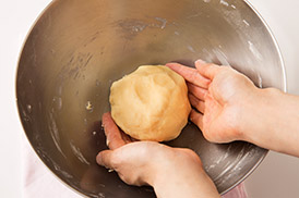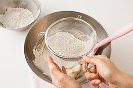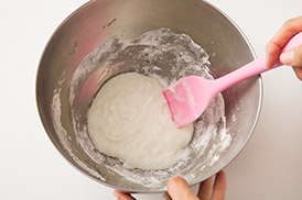 生地がべたつくときには打ち粉(あれば強力粉(分量外)、なければ薄力粉)をふって作業するといいよ!