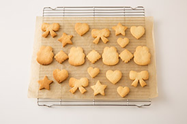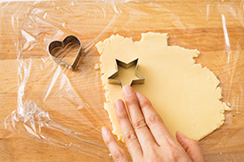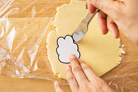 クッキー型を使う場合は、カッター部分に少量の強力粉(分量外)をつけておくと、生地がきれいに抜けるよ!