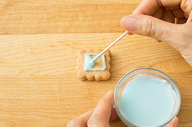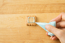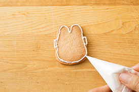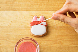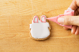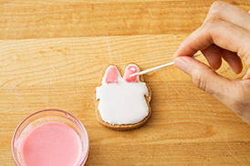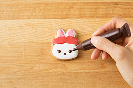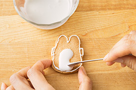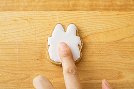 アイシングを塗った上にさらに模様をかくときは、さわっても大丈夫なくらいまで完全に乾いてからかこうね!