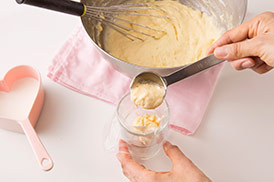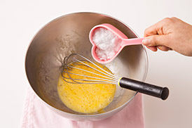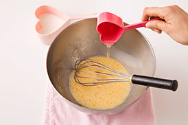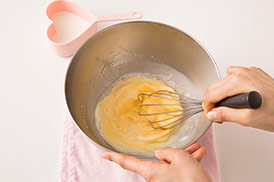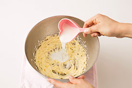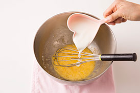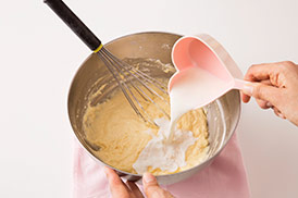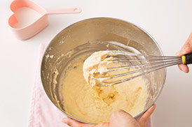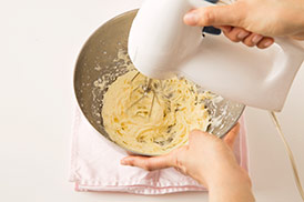 牛乳は少しずつ加えていかないと、バターとちゃんと混ざらないよ!