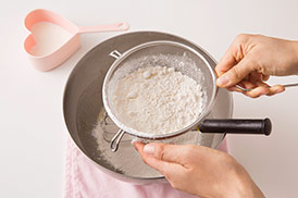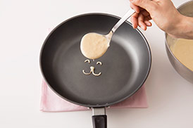 穴が開くのは、ベーキングパウダーが加熱されて化学変化を起こすからなんだ!パンケーキの表面が乾く前にひっくり返してね!