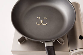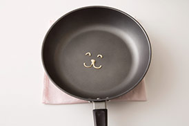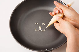 火にかける前のフライパンだから触っても大丈夫。失敗してもかきなおせばOK!好きな表情をかいてね!