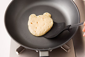 続けてくまのお絵かきをするときは、フライパンを洗って冷やしてからはじめてね!