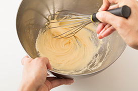 空気をたくさん含ませることで、後で火を通すときに熱をやわらかく伝える効果があるんだよ!