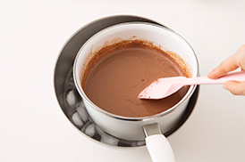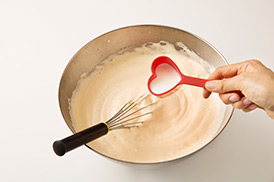 生地を湯せんでしっかりと温めるよ!湯せんの温度が高すぎると固まってしまうから気をつけてね!