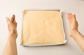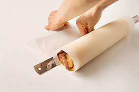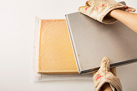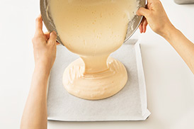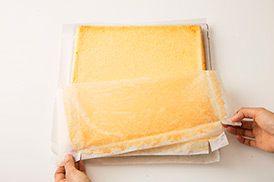 オーブンペーパーをつけたまま冷ますと、生地にしわができて見た目が悪くなっちゃうんだ。