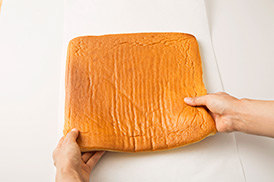 熱いうちは生地がやぶれやすいよ。オーブンペーパーは丁寧にはがしてね!