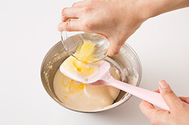 上段のスポンジケーキ分の材料と間違わないように気をつけてね!