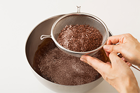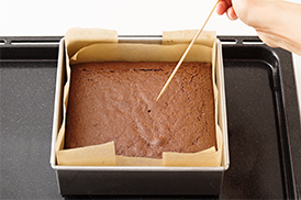 ブラウニーを型から外し、オーブンペーパーをつけたまま冷まします。