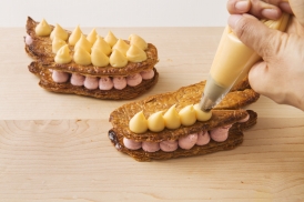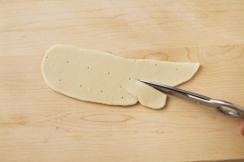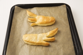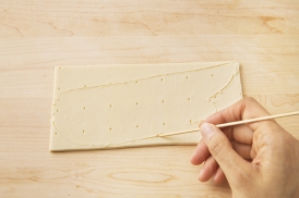 手でパイシートに長時間触れていると生地のバターが溶けて、ミルフィーユの層がきれいに焼けないよ。なるべく手早く作業を進めよう!