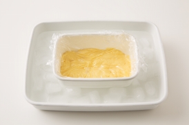 ラップは必ずクリームの表面にぴったりと貼り付けよう!乾燥だけでなく水滴がたまるのを防ぐよ!