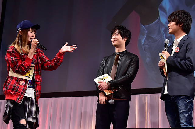 出演陣に「かなりせめた台本」と言われた公開アフレコは、三森さん演じる春奈がアイドルのようにレスポンスを呼び掛ける挨拶をして、橘田さん演じるヒカリに「まるで武道館でライブした経験があるみたいね」といわれたり、梅原さん演じるダークが実は相当な抹茶好きであることが明かされるなど、キャストのほかの出演作や趣味にからんだネタが多数盛り込まれ、さらにアドリブが随所に入り、会場は笑いに包まれました。
