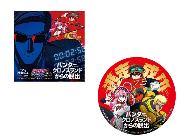 2023年9月28日(木)より東京、名古屋、大阪の3都市で順次開催のリアル脱出ゲーム×TVアニメ「逃走中 グレートミッション」『ハンターだらけのクロノスランドからの脱出』にて、イベント限定のオリジナルステッカーが販売決定!