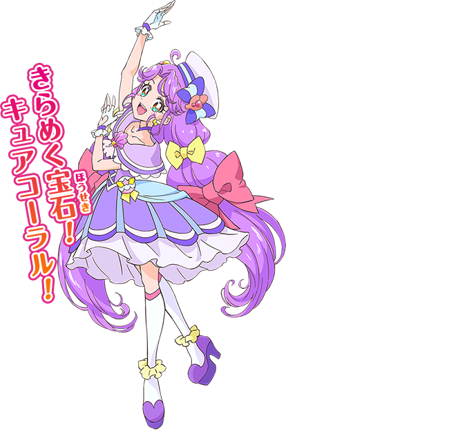 かわいいものがとにかく大好きで、おしゃれな中学1年生!まなつのクラスメイト。周りにやさしく気遣いができ、誰とでもすぐに仲良くなれるタイプ。家は街にあるコスメショップで、メイクやコスメのことを良く知っている。“チーク”がチャームポイントの「キュアコーラル」に変身!