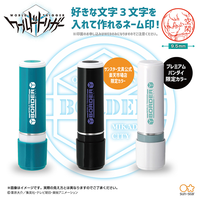 好きな絵柄と文字(3文字以内)を入れてオリジナルのネーム印が作れます。選べる印面はなんと全70種!!ボーダー隊員大集合!