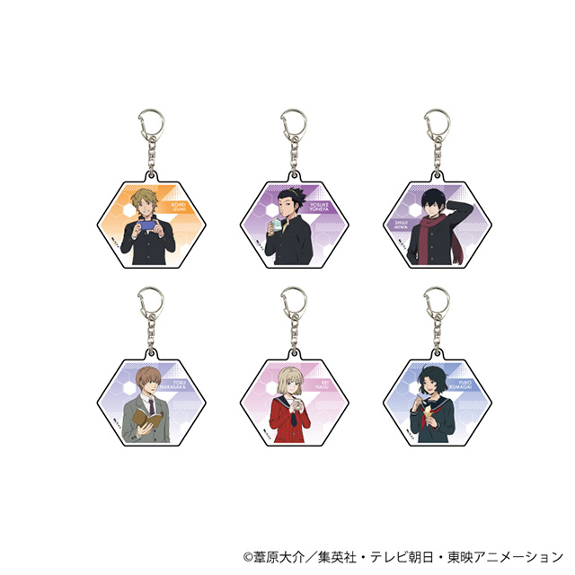 【BOX2】アクリルキーホルダー 学生服ver.(描き下ろし)(ブラインド) 価格 各858円 発売日 2022年4月8日 コンプリートBOX:5,148円(税込) ダイカットで切り出し印刷と加工を施したアクリルキーホルダーです。裏は無地の白となります。 詳しくはこちら GOODS 一覧へ