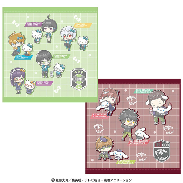ワールドトリガー×サンリオキャラクターズ シリーズ 刺繍ハンドタオル(全2種) 価格 各990円 発売日 2022年10月28日 『ワールドトリガー×サンリオキャラクターズ』のプレミアムショップオリジナルグッズ サイズ:約H250×W250mm 素材 :綿 詳しくはこちら GOODS 一覧へ