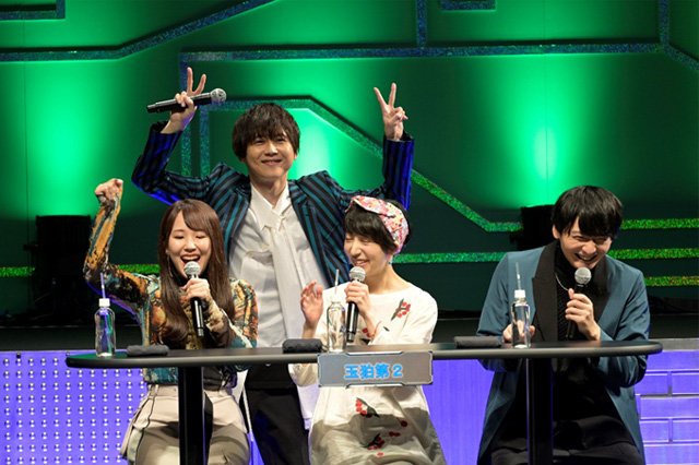 オープニングトークを終え、村中さん・田村さん・島﨑さんの「玉狛第2」、小西さん・竹田さん・小野さんの「生駒隊」、潘さん・赤羽根さんの「香取隊」、そして庄司さん・野島さん・釘宮さんの「攻撃手+オペレーター」チームと、キャストが4チームに分かれて着席。最初のコーナーとなる「ワールドトリガー・ステーション」が開始されました。昨年も好評を集めた同コーナーは、出演キャスト、制作スタッフ、原作者の葦原先生ほか、多数の関係者が回答した膨大なアンケートをもとに、『ワールドトリガー』にまつわる話題を深掘りするというもの。今回は、アニメの2ndシーズンにフォーカスしてトークが行われました。