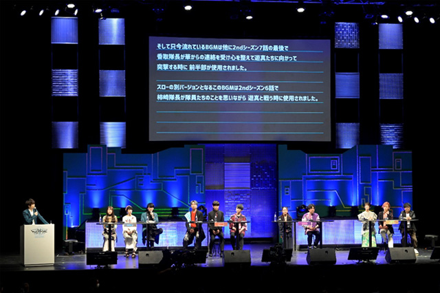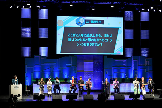 小西さん・小野さんからは生駒・隠岐のキャラクターについて、田村さんからは戦闘シーンの組み立て方、釘宮さんからは先生自身のひそかなこだわりと、バラエティ豊かな質問に対し、先生はコミカルな話題を交えつつ真摯に返答。会場からは笑いと感心の声があがっていました。畑野監督も、島﨑さんの劇伴に関する質問に、2ndシーズンの印象的な戦闘シーンでどのような思いで川井憲次さんのBGMを使用したかを答え、キャスト陣をうなずかせていました。