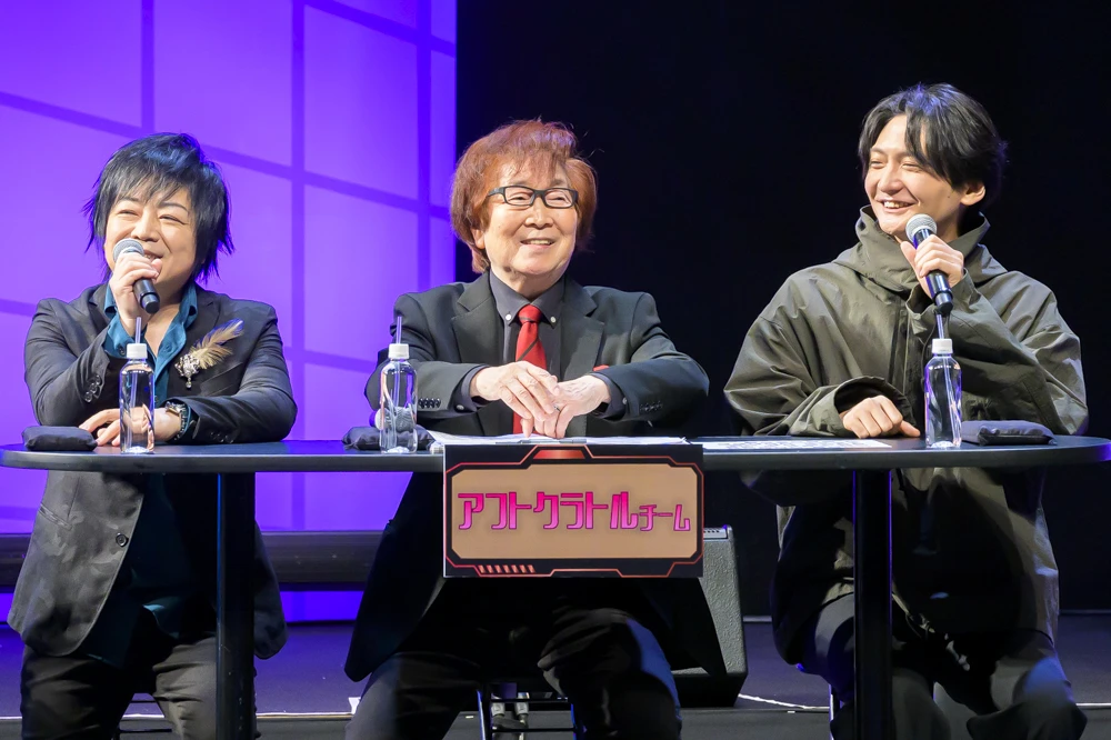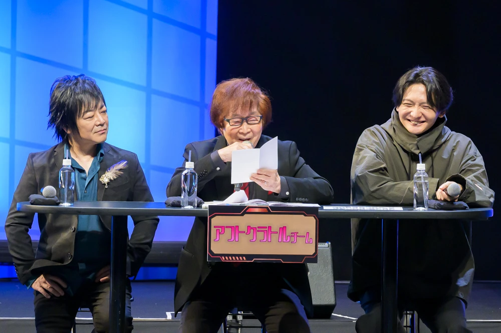 「忘れられない印象的なエピソード」では、梶さんが披露した村中さんの成長を語るエピソードから話題が広がり、村中さんが本当はもっとアフトクラトルの先輩方と喋りたかったことを激白。「すごいわかる」と同調した梶さんに田村さんも加わり、アフトクラトルの役を演じた面々に深々と頭を下げる事態に発展。客席のどよめきと笑い声が会場を包み込みました。