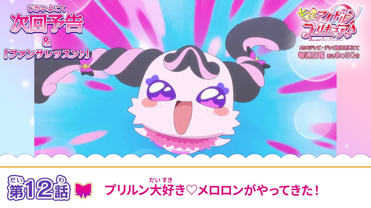 クラヤミンダーを退治したアイドルプリキュアの姿に感激するメロロンでしたが、グリッターにやってくると、うたたちに「ライバル宣言」し、プリルンといっしょに暮らすと言い出します。うたたちは一度は顔を見合わせつつも、笑顔でメロロンを迎え入れるのでした。