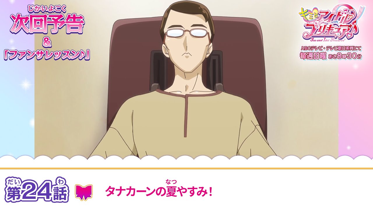 うたたちがグリッターに戻ってくると、先に帰っていた田中は、アイドルプリキュアとズキューンキッスの今後の展開についてまとめた企画案を用意していました。資料を見せながら「休みをもらったおかげで、もっと頑張ってみんなを支えたいという自分の本当の気持ちに気づいた」と語る田中。さらにうたたちの仕事がまだ途中だと聞くと、「私の仕事は、私にしかできませんから!」とやる気に満ちた表情で高笑いをするのでした。