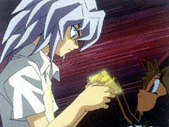 遊戯達のクラスに転校生がやってきた。彼の名は獏良了。いきなり人気者の獏良は遊戯たちともすぐ仲良しになった。 歓迎会をかねて、ゲームセンターへいって楽しむ遊戯達。そんな彼らにゲームのモニターから、呼びかける声がする。 海馬からの果たし状だ!! 「・・・・・・・」