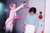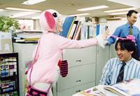 東映アニメーションにやってきたウータマリーナ1号。 気分はオニ退治だ。 |